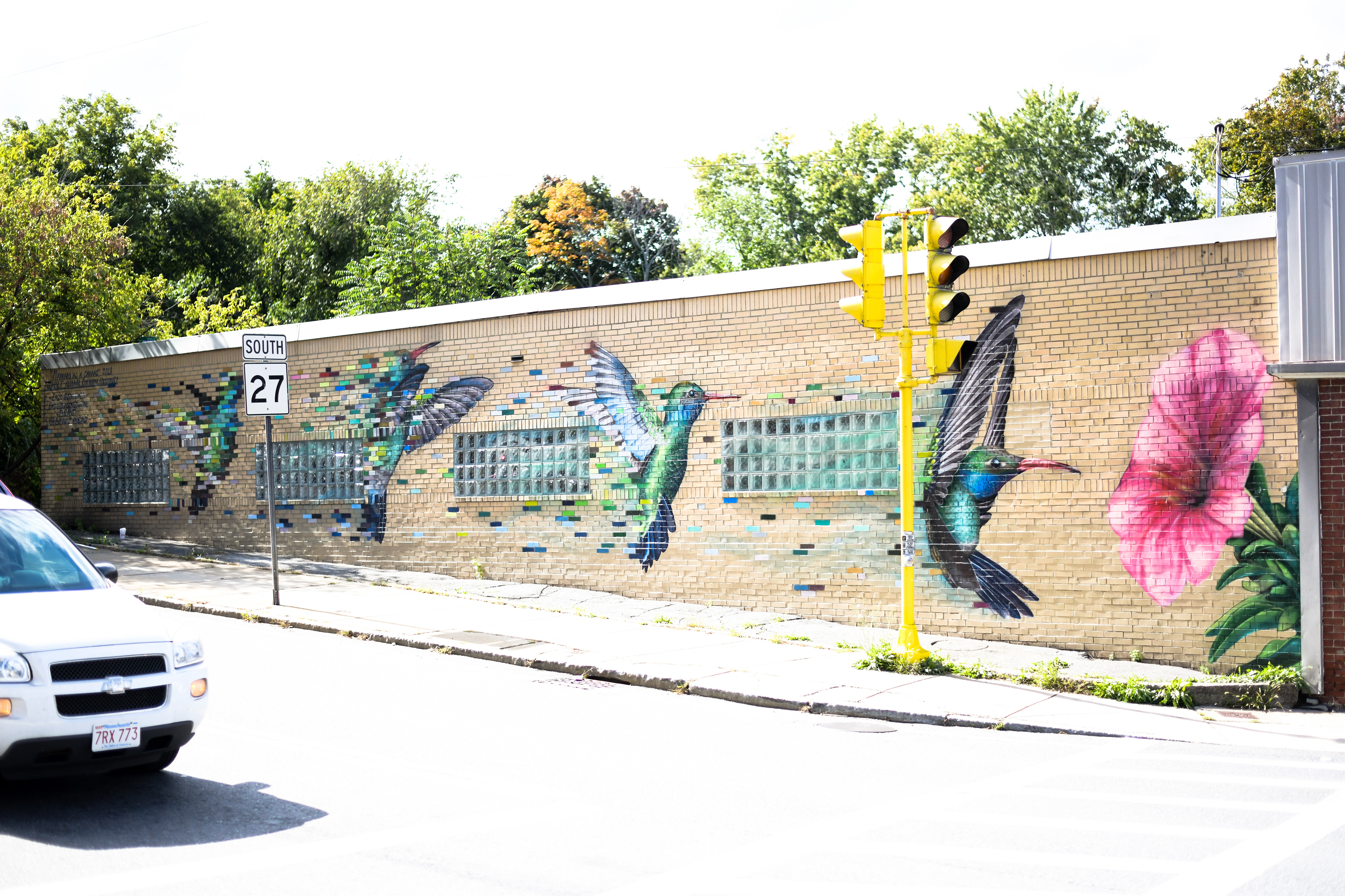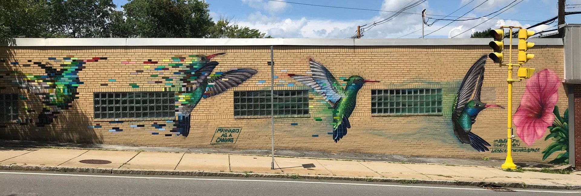 70' x 13' Spray Painted Mural with Berj and commissioned by The Town of Maynard, MA, for "Maynard As A Canvas".