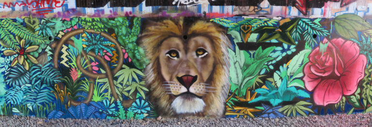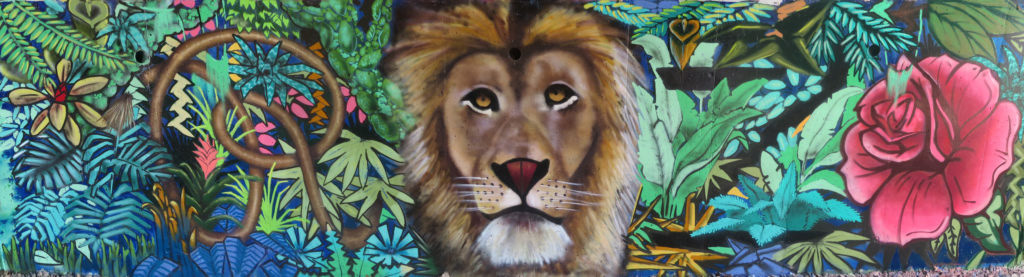 30′ x 8′ day-long spray painted “ROZA” mural with